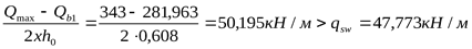 По условию 75 [2] проверим прочность наклонного сечения по поперечной силе. Определим величины Мb и qsw: