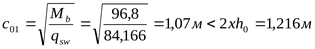 Согласно п. 3.23 [3] определяем длину проекции опасного наклонного сечения с.