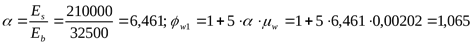 Согласно формуле (72) [2], проверяем прочность по наклонной полосе ребра плиты между наклонными трещинами. Определяем коэффициенты φw1 и φb1: