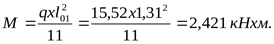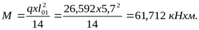 Изгибающий момент с учетом перераспределения усилий в статически неопределимой системе будут равны: