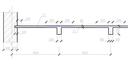 толщину плиты примем 80мм при максимальном расстоянии между осями 1600мм.