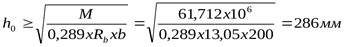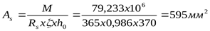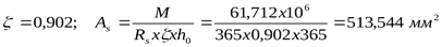Сечение на опоре В , М=61,712 кНхм. Вычислим h0=h-a=400-35=365мм;