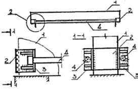 1 – усиливаемая конструкция; 2 – анкерное устройство, устанавливаемое на растворе; 3 – упоры, привариваемые к анкерному устройству; 4 – затяжки с анкерными устройствами, устанавливаемые в нагретом до 350-400 0 С состоянии на упоры (одновременно с двух сторон).