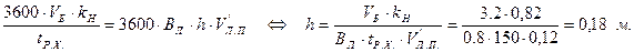 где Lб =0.8L=0.96 – длина борта питателя, м;