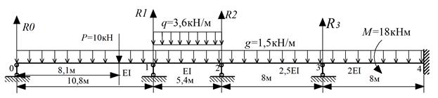Рівняння трьох моментів длязаданоїсхемимаютьвигляд: