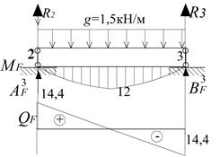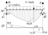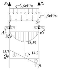 Будуємо епюри MF , QF і обчислюємо фіктивні опорні реакції.
