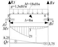 3.2 Визначаємо опорні моменті на лівому и правому кінцях навантаженого прогону за формулами