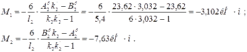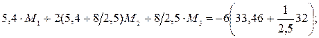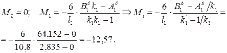Після підстановки в рівняння трьох моментів маємо: