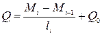 Формула для обчислення поперечних сил у довільному перерізі будь-якого прогону нерозрізної балки:
