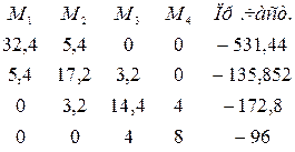 Вирішуємосистему рівнянь трьох моментів вMathcadeі отримуємо: