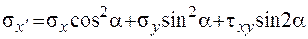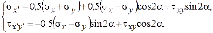 Ориентация главных осей определяется из условия t x ¢ y ¢ = 0, откуда tg 2 a o = 2 t xy /( s x - s y ). (1.4)