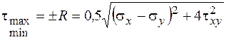 Экстремальные касательные напряжения равны по величине радиусу круговой диаграммы