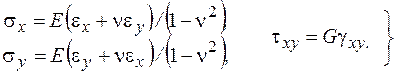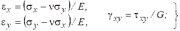Зависимости между напряжениями и деформациями определяются законом Гука:
