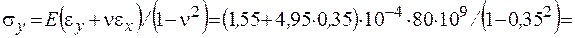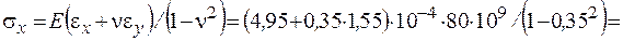 Пользуясь законом Гука в обратной форме, находим напряжения