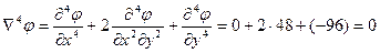 Подстановка полученных выражений в бигармоническое уравнение обращает его в тождество: