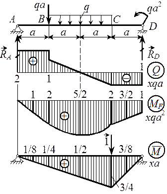 R A = 2 qa , å Y i = 0, R A + R D = 3 qa , R D = qa .