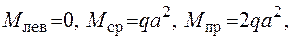 R A × 4 a = qa × 3 a + q × 2 a × 2 a + qa 2 ,
