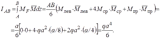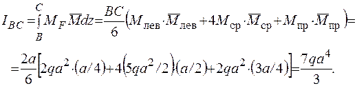 1. Определение перемещений. Для вычисления интеграла Мора воспользуемся формулой Симпсона, последовательно применяя ее к каждому из трех участков, на которые разбивается балка.