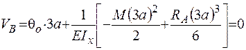 2. Определение прогибов. Из условий опирания балки V A = V B = 0. Согласно первому условию V о = 0, а из второго находим q о :