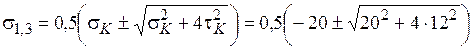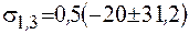 Непосредственно из круговой диаграммы находим величины главных напряжений: |