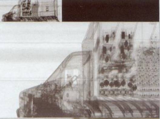 Пример, демонстрирующий возможности систем третьего поколения по контролю крупногабаритных объектов, приведен в прил.№3, где показано рентгенотелевизионное изображение автомобильного контейнера с нелегально провозимыми людьми.