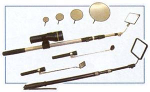 Для быстрого просмотра протяженных днищ больших транспортных средств выпускаются широкоформатные панорамные зеркала, смонтированные на небольших шарнирных колесах. Выпуклое зеркало и длинная телескопическая рукоятка на шарнире обеспечивают большой угол обзора и возможность осмотреть самые удаленные участки днища фургона или трейлера. Основное назначение таких зеркал – выявление на днище транспортных средств посторонних предметов.