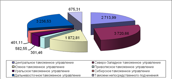 Рис. 2. Суммы доначисления таможенных платежей по результатам корректировок таможенной стоимости в 2008 г. (млн. руб.)