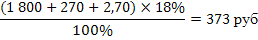 1 800 + 270 + 2,70 + 300 = 2 372,70 руб.