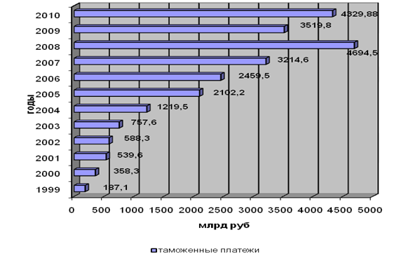 Рис. 1. Динамика поступления таможенных платежей в 1999-2010 гг.