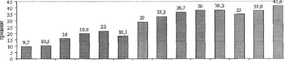 Рис. 1.1. Доля таможенных платежей в доходной части федерального бюджета в 1991-2004 гг.