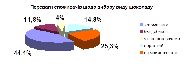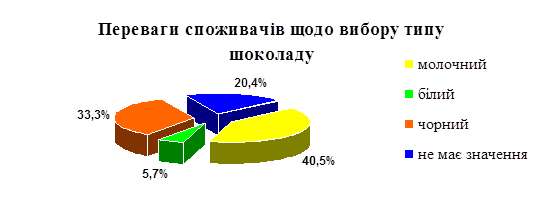 Враховуючи те, що майже кожен виробник шоколаду має власну рецептуру виробництва даного виду продукції і тримає її у секреті, для ідентифікації і визначення фальсифікату потрібно брати показники якості, які нормуються у ДСТУ 3924-2000 і не залежать від рецептури шоколадних виробів. До таких показників відносяться: ступінь подрібнення шоколадної маси[4] , масова частка золи, що не розчиняється у 10%-му розчині соляної кислоти [5] , і масова частка цукру.Ступінь подрібнення шоколадної маси було обрано для визначення якості виробничого процесу з метою визначення фальсифікації. Другий показник було обрано для визначення складу шоколаду, при невірних показниках масової частки золи буде відомо, чи справді склад шоколаду відповідає вимогам рецептури.Кількісні показники масової частки цукру дадуть змогу віднести шоколад до тієї чи іншої асортиментної групи шоколаду. Результати досліджень будуть наведені в таблиці 3.