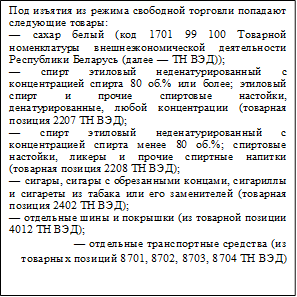 Данные изъятия установлены только при импорте товаров в Республику Беларусь (см. рис. 2).
