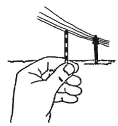 Определение расстояния с помощью спички. Спичка - простейший дальномер. Предварительно на ней надо нанести чернилами или карандашом двухмиллиметровые деления. Необходимо также знать примерную высоту предмета, до которого определяется расстояние. Так, рост человека в метрах равен 1,7, колесо велосипеда имеет высоту 0,75, высота всадника - 2,2, телеграфного столба - 6, одноэтажного дома без крыши - 2,5-4 м.