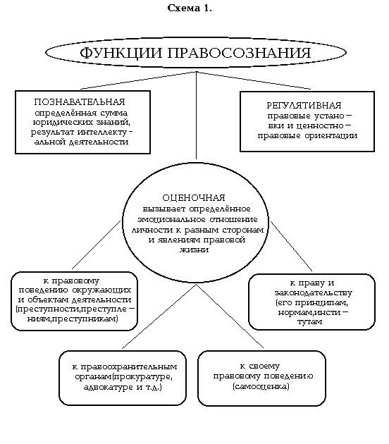 1. В правосознании отражаются лишь те явления, которые составляют правовую сторону жизни общества. Оно охватывает процесс создания правовых форм, реализацию их требований в общественной жизни. Политические, нравственные и другие идеи и представления тоже активно воздействуют на формирование и реализацию норм права. Но прежде чем получить выражение в правовых нормах, в практике их применения, они должны пройти через правосознание, то есть получить правовую форму в виде правовых идей и представлений.