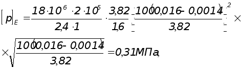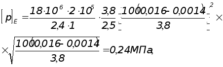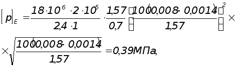 а допускаемое давления из условия устойчивости в пределах упругости определяются по формуле