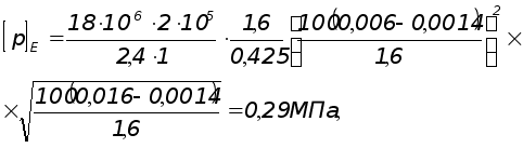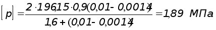 Определим допускаемое давление из условия прочности по формуле (25) :