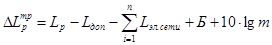 2. Рассчитываем фактический уровень шума в расчетной точке по формуле: