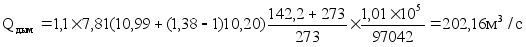 Qдут.в.=1,1ґ 7,81ґ 10,2(1,13+ 0,1+ 0,06- 0)ґ((70.+273)/273)ґ(1,01ґ105/97042)=147,8 м3/с