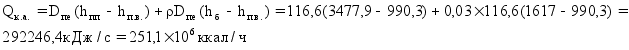 hп.п.=3459 кДж/кг hп.в.=990,3 кДж/кг hн=1617 кДж/кг