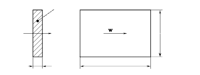 В теплообменном аппарате вертикальная плоская стенка толщиной δ = 5,5 мм, длиной l = 1,45 м и высотой h = 0,95 м выполнена из стали с коэффициентом теплопроводности λс = 50 Вт/(мК) (рис. 1). С одной стороны она омывается продольным вынужденным потоком горячей жидкости (воды) со скоростью w = 0,525 м/с и температурой tж1 = 80 ºС (вдали от стенки), с другой стороны – свободным потоком атмосферного воздуха с температурой tж2 =10 ºС.