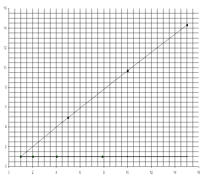 Наклонная линия характеризует 2 наложенных друг на друга графика функций