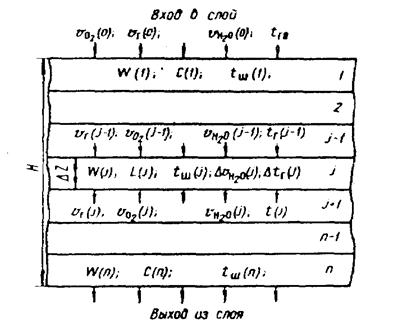 Для шихты номер j соответствует элементу разбиения; для газового потока номер j – 1 означает вход в элементарный слой с номером j, а номер j – выход из него.