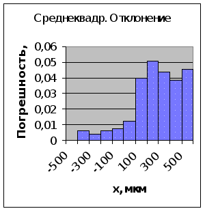 | x, мкм | Среднеквадр. отклонение | Относительная погрешность | Доверительный интервал |