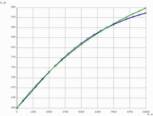 , можно получить зависимость температуры на оси цилиндра от времени. Температура подогревающего воздуха, в общем случае, неизвестна, но принимая во внимание большую продолжительность процесса и малое изменение температуры поверхности аппарата на 2 стадии, можно предположить, что она приблизительно равна температуре нагревателей печи. Недостаток такого предположения частично покрывается тем, что в дальнейшем выводе опущен теплоподвод излучением от нагревателей печи и подогревающего воздуха.