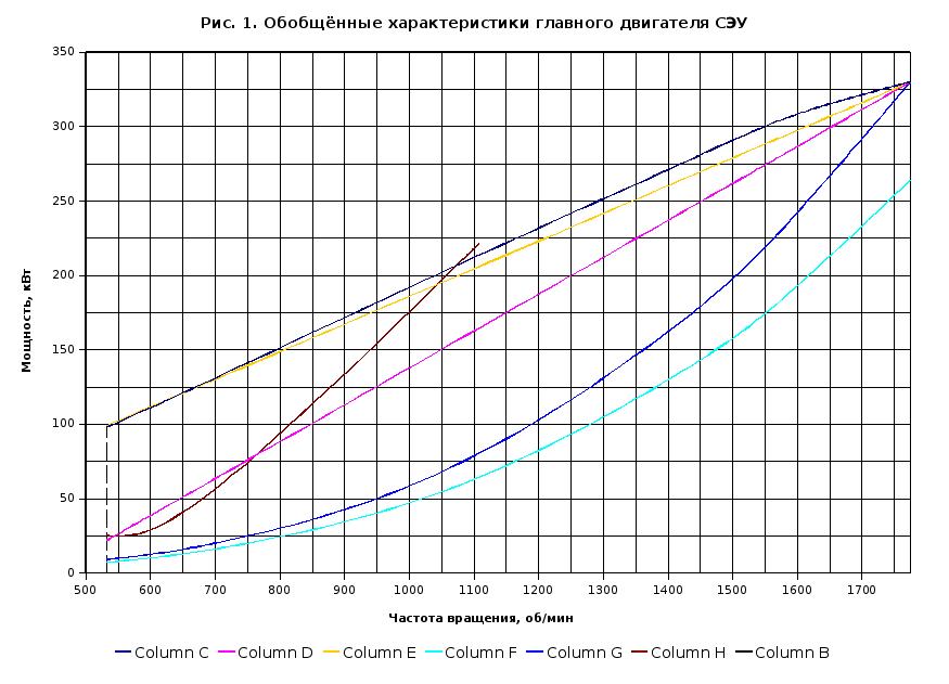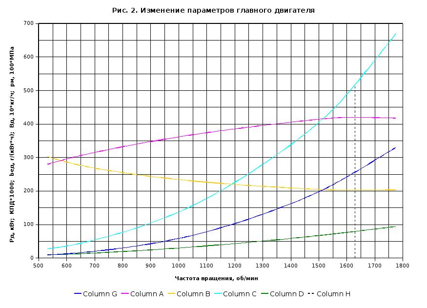 Графический материал – характеристики и графики изменения параметров главных и вспомогательных двигателей СЭУ.