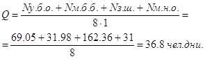 б) нормативные трудозатраты (Q): Q=44,4 чел. дн;