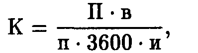 где К — количество рабочих мест контролеров-кассиров; П — площадь торгового зала, м2; в — среднее время расчета с одним покупателем; п — площадь торгового зала, приходящаяся на одного покупателя, м2; 3600 — количество секунд в 1 ч; и — коэффициент использования рабочего времени контролером-кассиром.