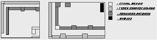 При боксовой планировке всю площадь торгового зала разбивают на изолированные друг от друга боксы (отделы).