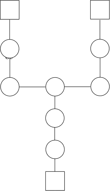 Собираемые детали и сборочный узел изображены в виде прямоугольника, а операции - в виде окружностей с последовательной нумерацией.