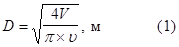 υ – средняя скорость газа в сечении цилиндрической части аппарата, м/с.